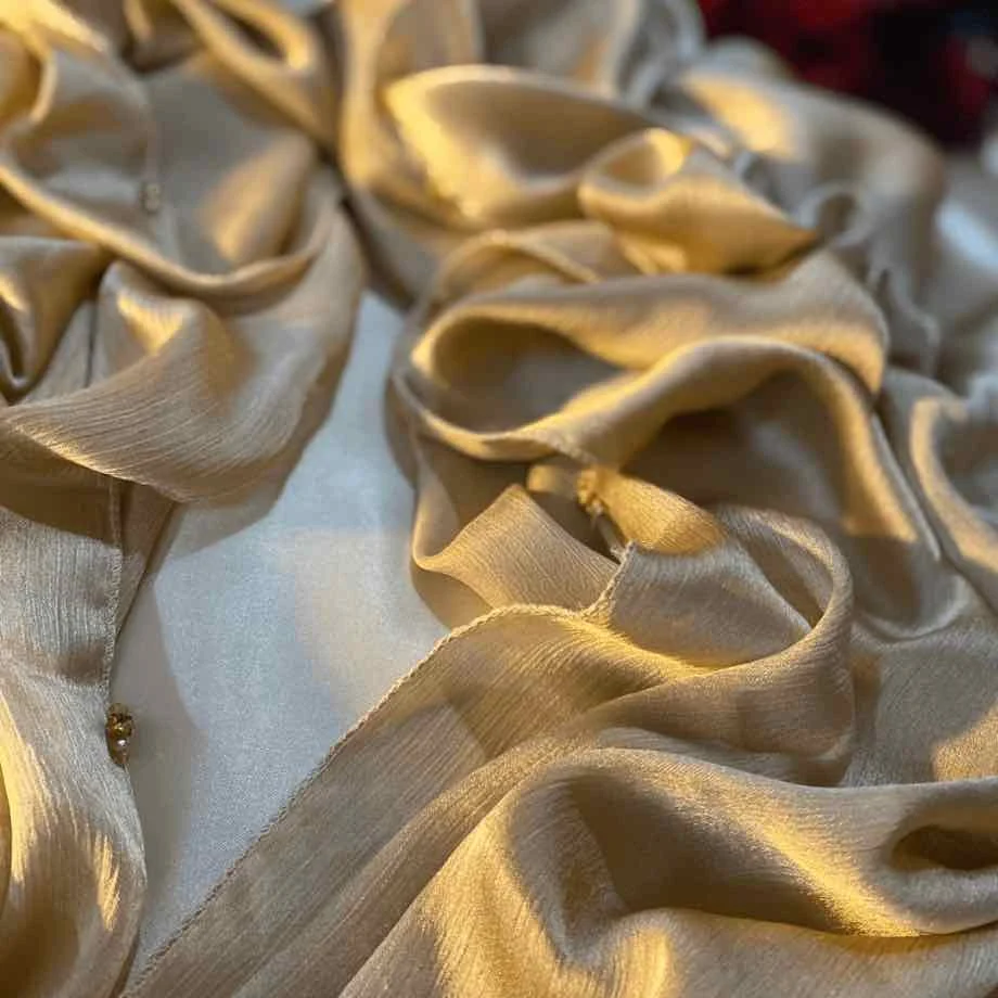 We craft each stole from the finest quality crinkle silk, lending it a rich texture that gracefully catches the light with every movement.