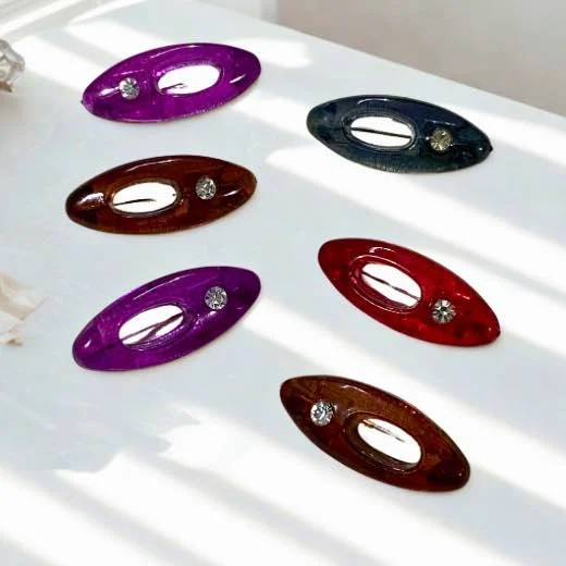 The modern oval design offers a chic and stylish silhouette, serving as the perfect canvas for the brilliant rhinestone accent at its center.