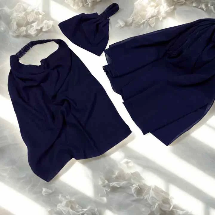 Our 3-piece chiffon georgette Hijab & Niqab Set seamlessly combines style and ease.