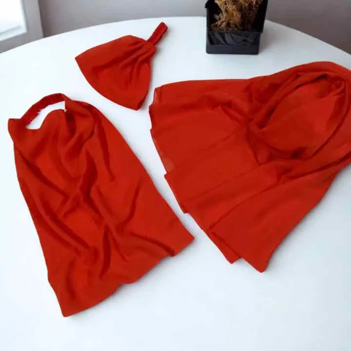 Our 3-piece chiffon georgette Hijab & Niqab Set seamlessly combines style and ease.