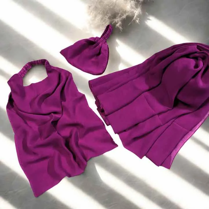 Our 3-piece chiffon georgette Hijab & Niqab Set seamlessly combines style and ease.