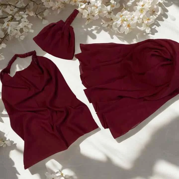 Our 3-piece chiffon georgette Hijab & Niqab Set seamlessly combines style and ease.