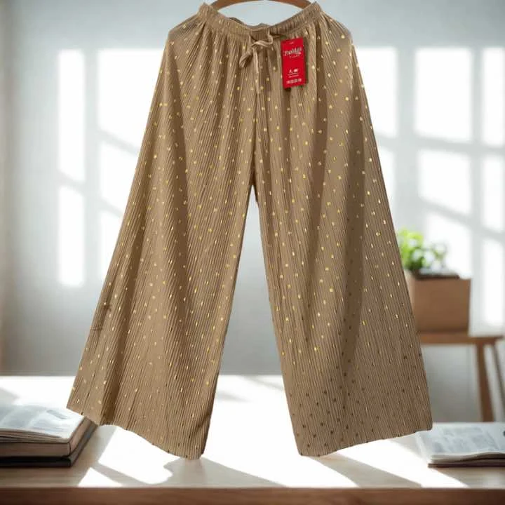 Indulge in the perfect blend of luxury and comfort with our Imported Gold Foil Plazzo Pants.