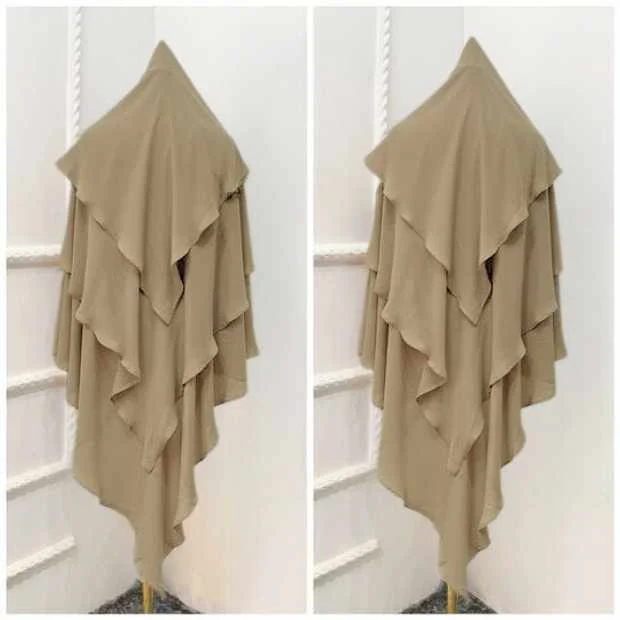 Three Layer Khimar Hijab with Niqab – Almond Beige