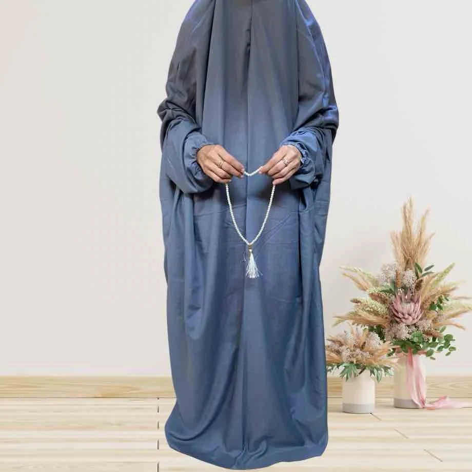 The soft elastic sleeves and covered elastic hem provide a secure yet comfortable fit, accommodating various body types while ensuring freedom of movement during Salah.