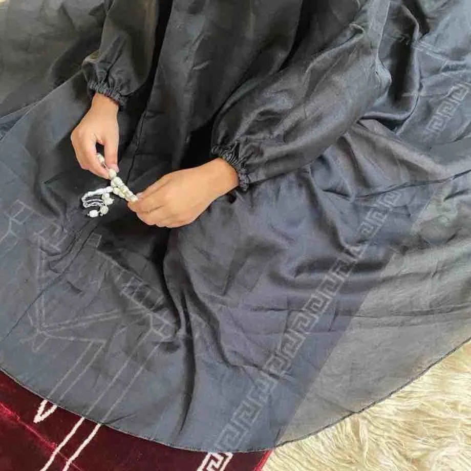 Kids Namaz Chadar With Sleeves (3 – 6 Years) – Midnight Black