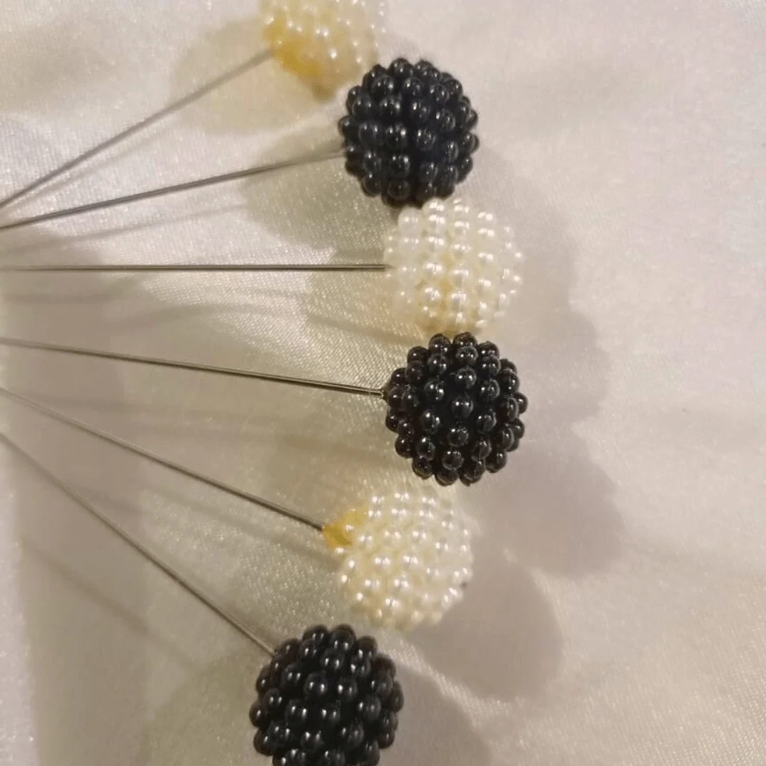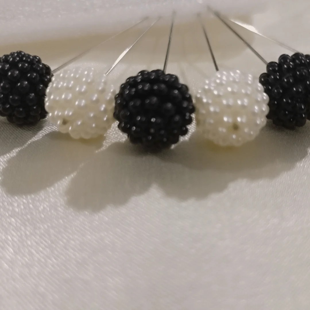Elegant pearl hijab pins in classic black and white, perfect for adding a sophisticated touch to your look