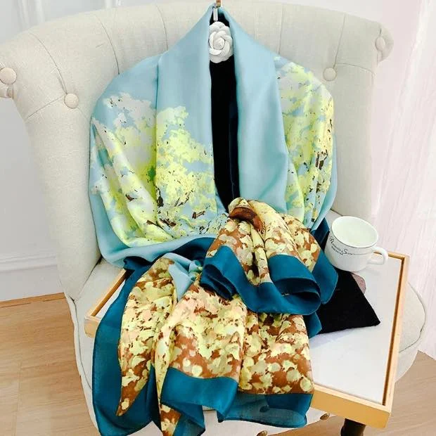 Expertly crafted from the finest silk, this exquisite scarf offers an unparalleled softness and a delicate sheen, ensuring both comfort and elegance in every wear.