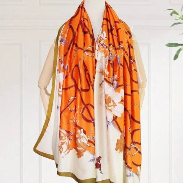 Expertly crafted from the finest silk, this exquisite scarf offers an unparalleled softness and a delicate sheen, ensuring both comfort and elegance in every wear.