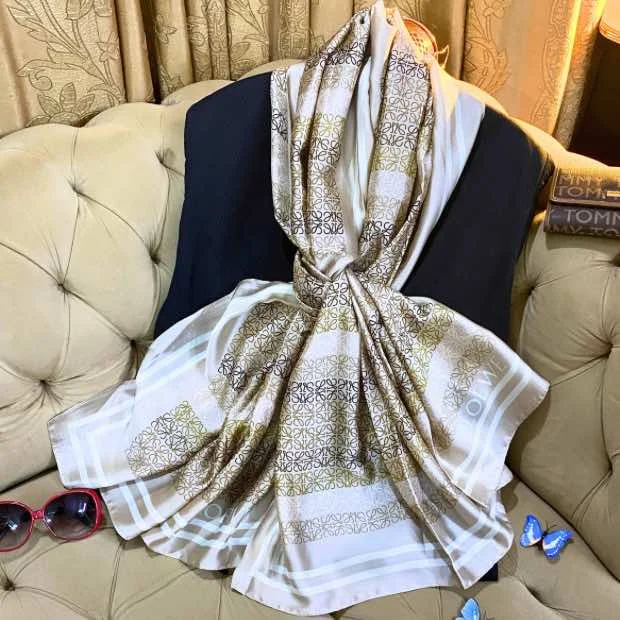 Expertly crafted from the finest silk, this exquisite scarf offers an unparalleled softness and a delicate sheen, ensuring both comfort and elegance in every wear.