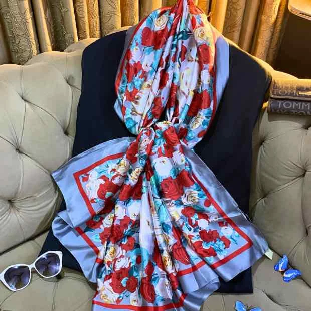 Expertly crafted from the finest silk, this exquisite scarf offers an unparalleled softness and a delicate sheen, ensuring both comfort and elegance in every wear.