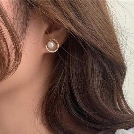 These Round Pearl Stud Earrings feature a bold and eye-catching design.