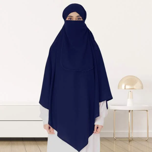 Single Layer Khimar with Niqab – Navy Blue