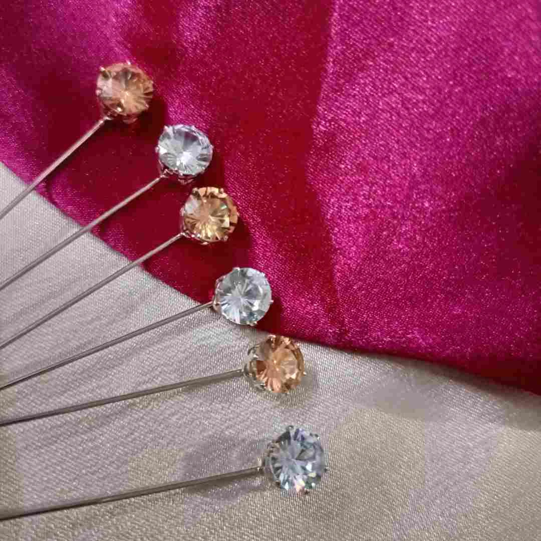These elegant copper and silver gem rhinestone hijab pins feature a stunning design with a sparkling gemstone allowing for versatile matching with different hijabs and outfits. Each pin is crafted with a long, slender needle, ensuring secure placement while adding a touch of sophistication and glamour to your hijab. Perfect for special occasions or everyday wear, these pins offer both functionality and style, making them a must-have accessory for any hijab-wearing individual.