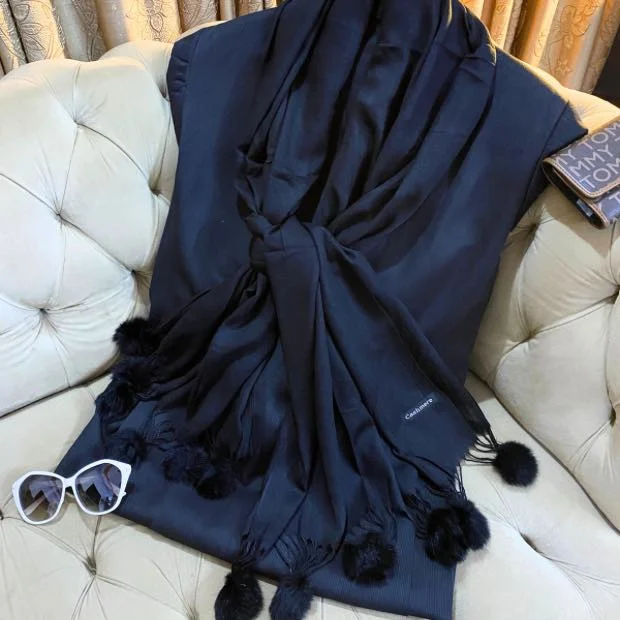Embrace the exquisite blend of sophistication, comfort, and effortless style with our Premium Cashmere PomPom Hijab.