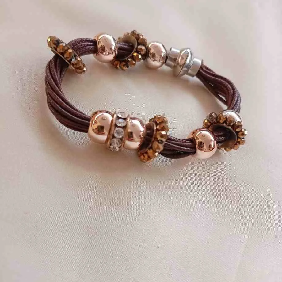 The centerpiece is a bead adorned with sparkling rhinestones, which instantly draws attention and enhances the bracelet’s overall aesthetic.